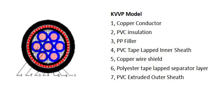 2.1 Меден проводник, PVC изолация, PVC обвивка, екраниран контролен кабел с оплетка от медна тел 2.2 Меден проводник, PVC изолация, PVC обвивка, екраниран контролен кабел с припокрита медна лента 2.3 Гъвкав меден проводник, PVC изолация, PVC обвивка, екраниран контролен кабел с оплетка от медна тел 2.4 Екраниран от медна лента контролен кабел с бронировка от стоманена лента за подобрена механична защита 2.5 Меден проводник, изолация от XLPE, екраниран управляващ кабел с оплетка от медна тел (устойчив на висока температура,